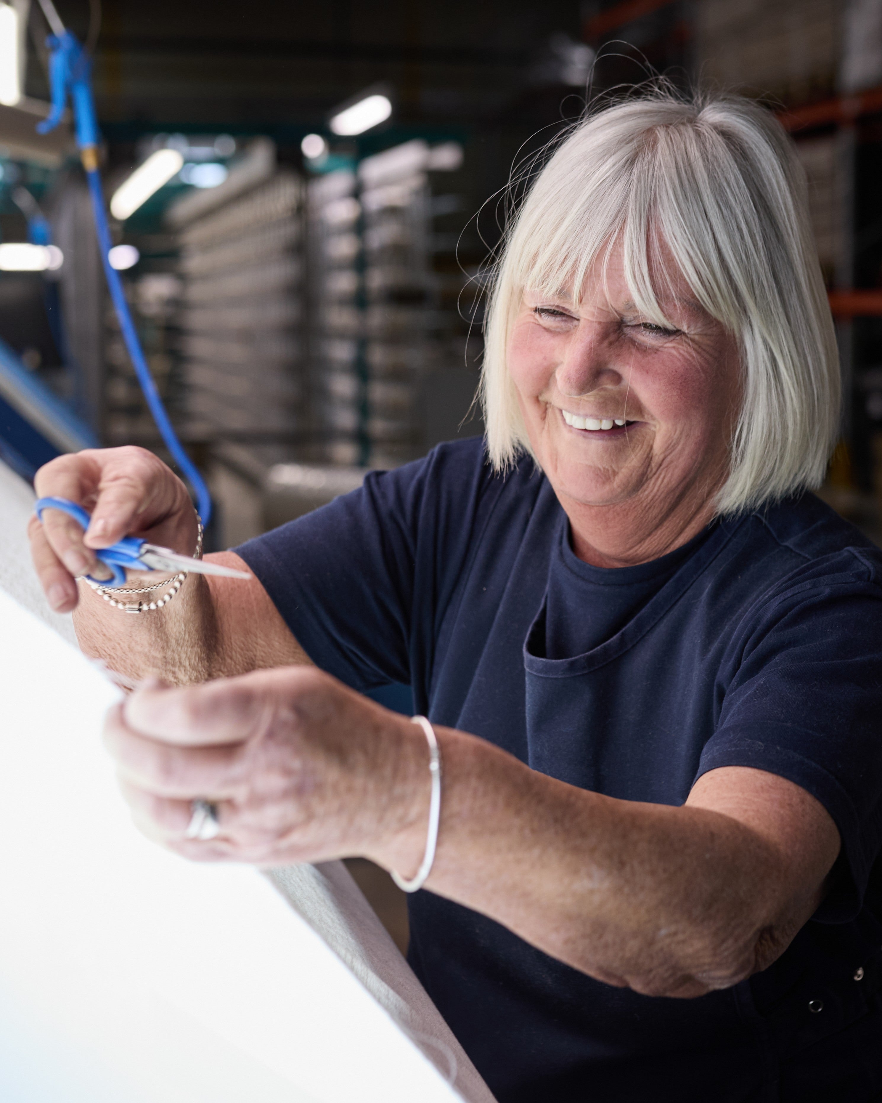 The blankets are woven at a jacquard mill in Lancashire with a long heritage of textile craftsmanship. They form part of our Cloud Cotton range, made from 100% recycled cotton and brushed for extra softness. Every piece is carefully woven and hand-finished with a blanket stitch edge.