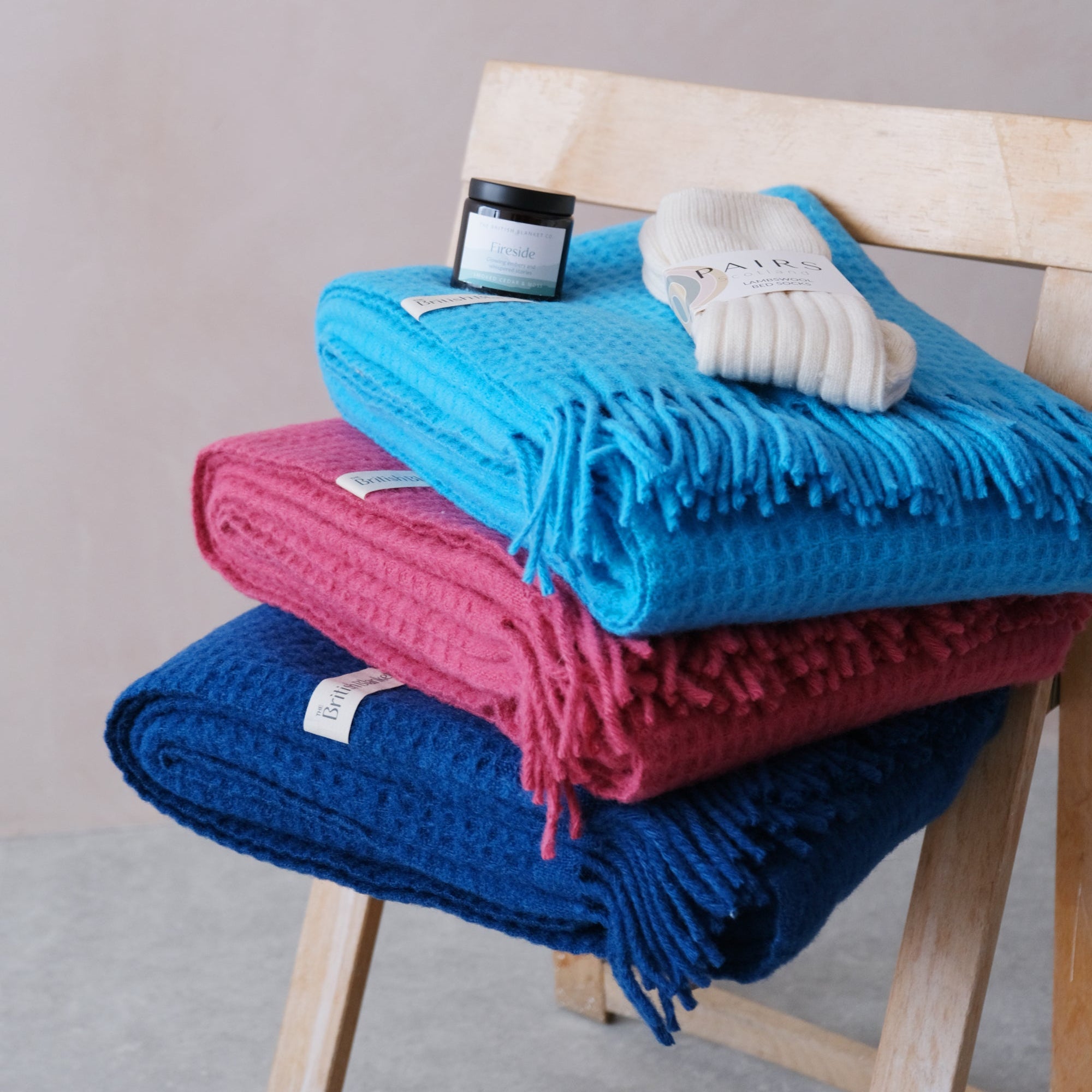 Grab the 2025 Bright Friday Bundle and save 20%! This bundle includes a small Totterdown Wool Waffle Blanket in Lush bright pink, a scented jar candle and a pair of luxury lambswool bed socks. Save £30 on buying the items individually - this is a perfect gift or self-treat.