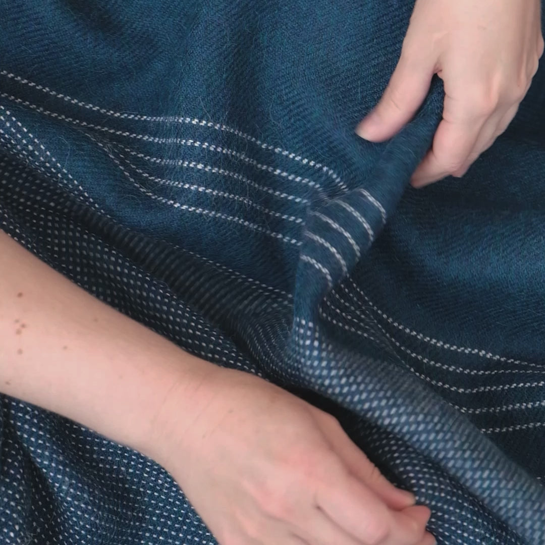 Luxuriously soft 100% alpaca blanket in a deep blue