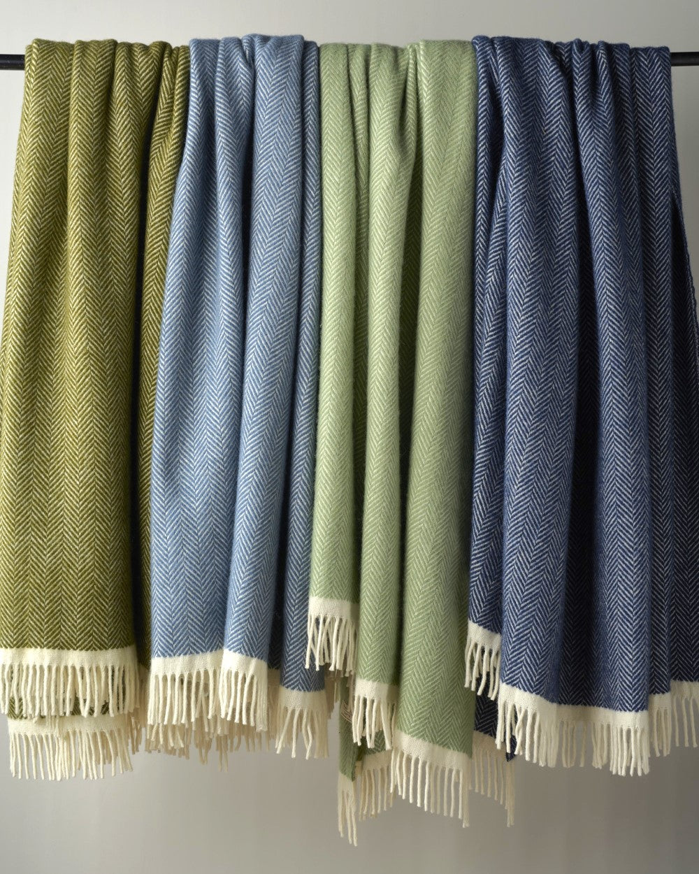 Our Clifton Herringbone blanket in Steamship is stylish and versatile. Woven from pure wool for natural warmth, it feels satisfyingly thick without being heavy. Proudly made in England, it features our famous HeritEdge detail and a timeless ivory fringe.