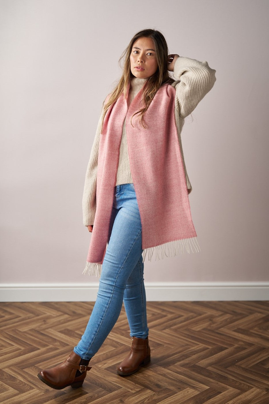 - 100% Merino Lambswool Scarf in Blossom Herringbone